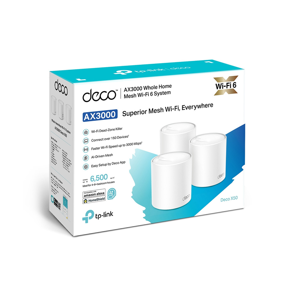 ROUTER TP-LINK DECO X50 (3-PACK) SISTEMA WIFI DE MALLA AX3000/WIFI 6/HOMESHIELD/CONTROL DE VOZ